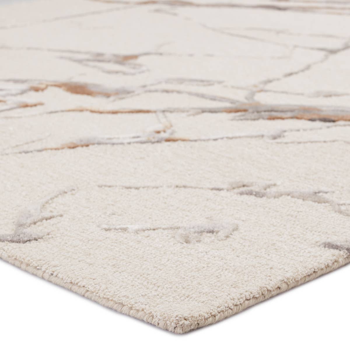The hand-tufted Fragment collection features nature and mineral-inspired motifs that offer the perfect patterned intrigue to modern spaces. The Shattered rug features a fractured abstract design in a light neutral colorway of cream, silver and charcoal gray, soft gold, and taupe. The cut and looped pile combines with a luxe wool-viscose blend for a stunning range of texture, luster, and dimension.